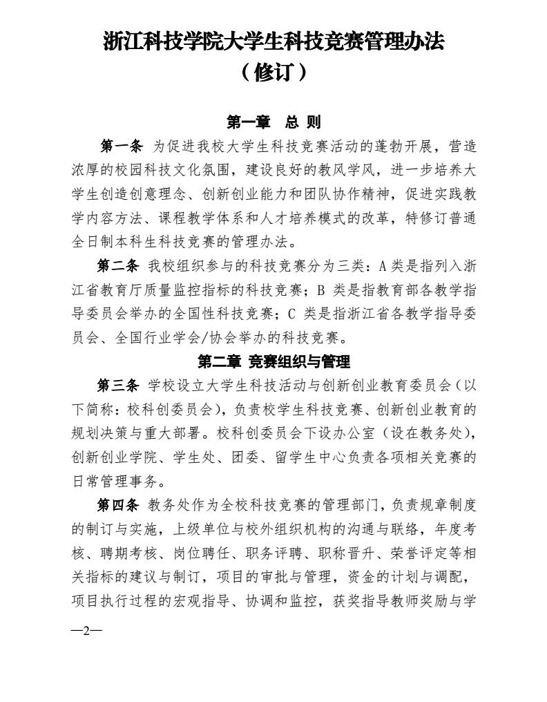 浙江科技学院关于印发大学生科技竞赛管理办法(修订)的通知20180312