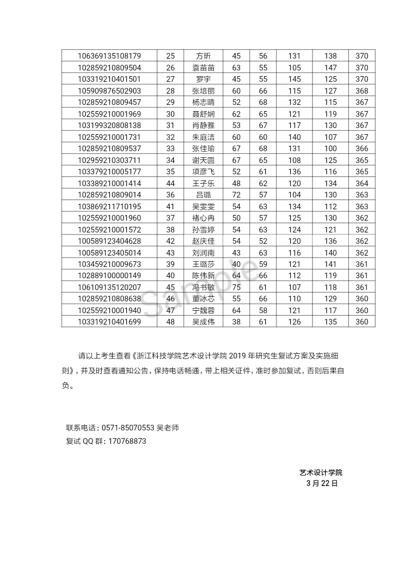 浙江科技学院艺术设计学院2019年硕士研究生招生调剂工作实施细则