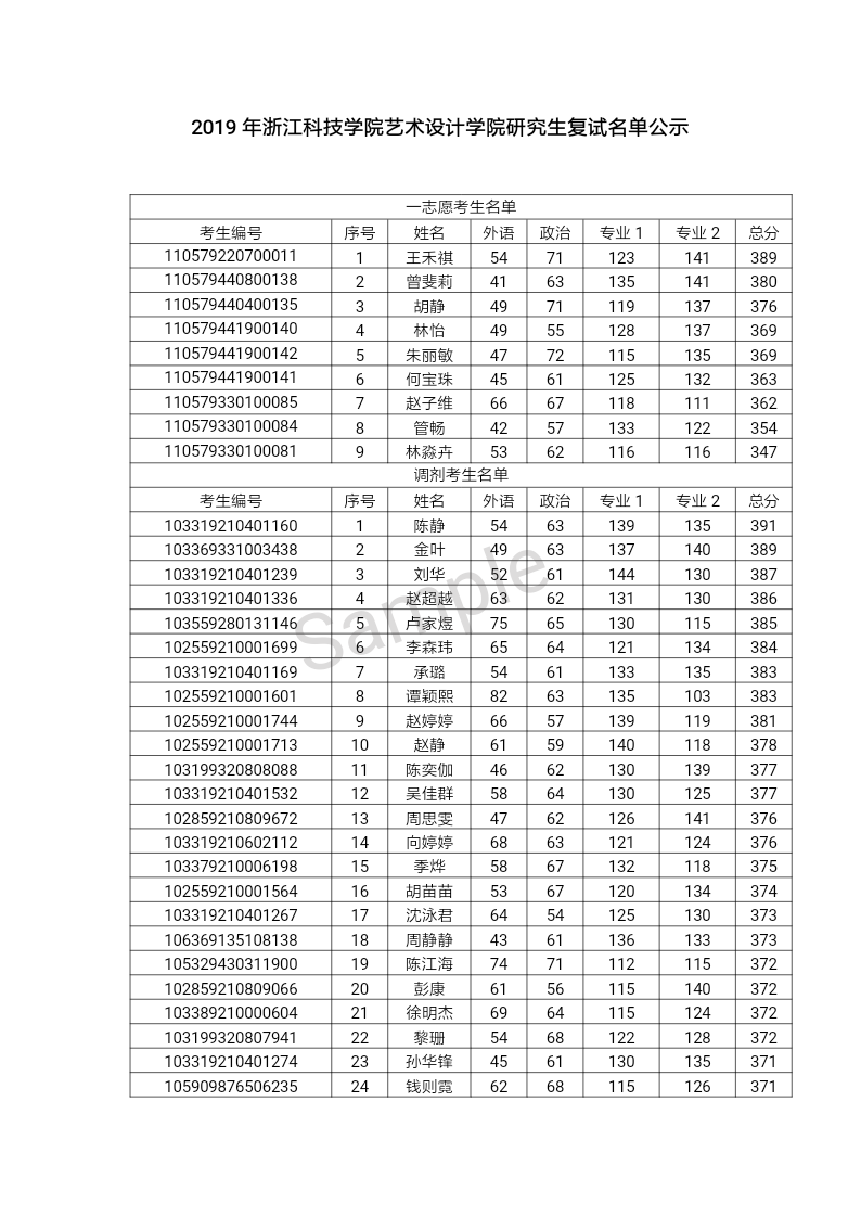 2019年浙江科技学院av电影 研究生复试名单