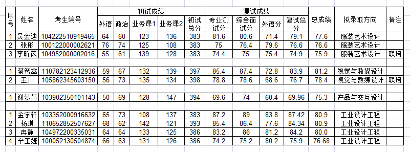 浙江科技学院艺术设计学院2022年硕士研究生拟录取名单公示(调剂第二批)