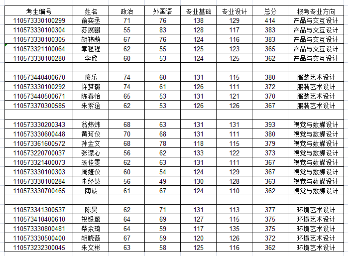 浙江科技学院av电影 2023年硕士研究生招生复试名单(135100艺术一志愿)