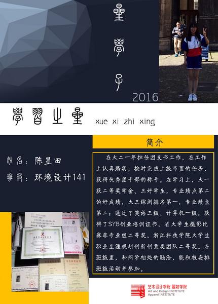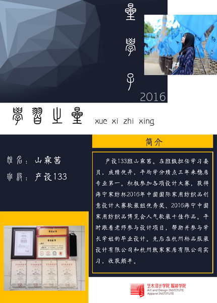 设计学是我校艺术门类下的主体学科,创建于1988年,2002年列为浙江省重点扶植学科,2005年被评为浙江省第五批重点学科,2012年被评为浙江省十二五重点学科,2007年艺术设计专业获浙江省重点建设专业,2009年获教育部国家特色专业建设点,2012年被评为省优势专业,服装设计专业和工业设计专业分别入选省新兴特色专业,2016年服装与服饰设计入选省优势专业。设计学...