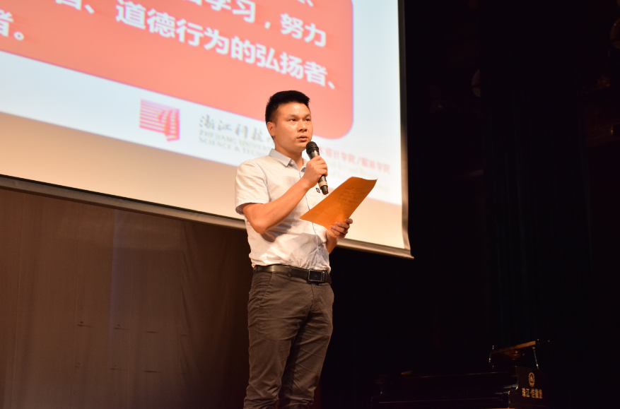 大学是培养大学生品行的课堂,实践社会主义核心价值观的沃土,诚信就是我们设计师最应遵守的美德,2018年9月12日,于浙江科技学院安吉校区在艺术设计学院在安吉举行了开学典礼,在最后由安吉校区的政治辅导员吴京金老师带头宣誓。