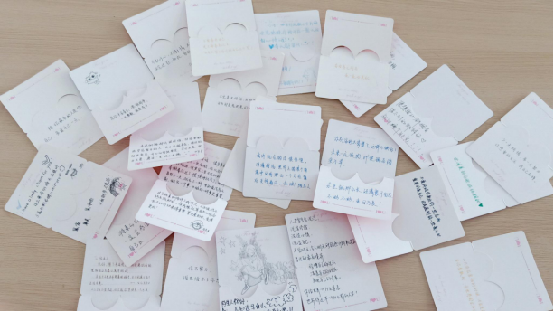 “漂流瓶”的形式让整个活动充满了神秘感,同时我们发现,许多同学在“未知”的情况下以最大的善意对待接收者,并带着最美的期待打开小卡片,接受祝福、拥抱温暖。