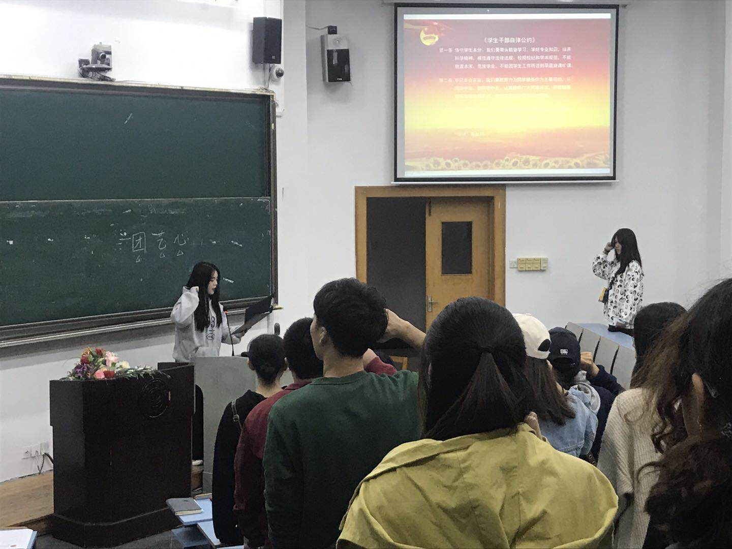 分团委的主席团成员,大家陆续进行了签到然后落座认真听讲。
