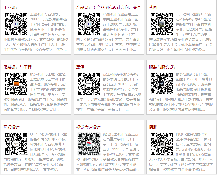 设计学是我校艺术门类下的主体学科,创建于1988年,2002年列为浙江省重点扶植学科,2005年被评为浙江省第五批重点学科,2012年被评为浙江省十二五重点学科,2007年艺术设计专业获浙江省重点建设专业,2009年获教育部国家特色专业建设点,2012年被评为省优势专业,服装设计专业和工业设计专业分别入选省新兴特色专业,2016年服装与服饰设计入选省优势专业。设计学...