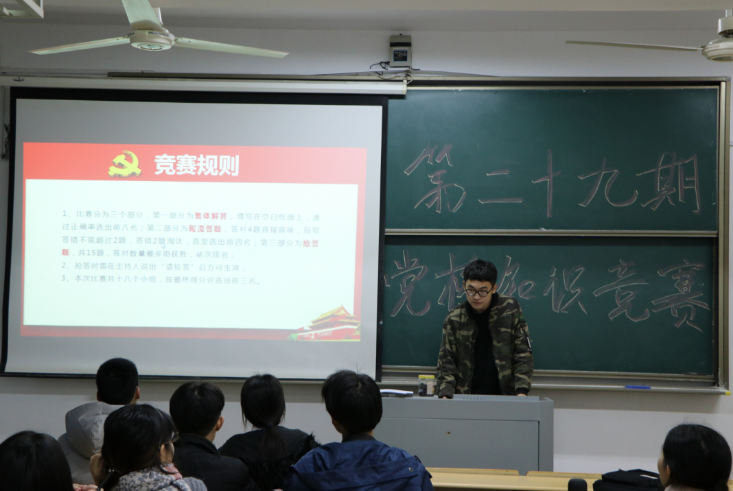 为加强党的基层组织建设,提升入党积极分子的党性修养,2017年11月9日-27日,艺术设计学院/服装学院中研会以“学党史,颂党魂,立斗志,扬青春”为主题的一系列活动在B楼举办,全体党校学员参与了比赛。