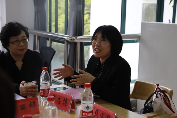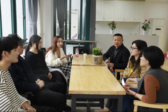 钟琴副书记还与服设、服工系主任与素本服饰、气泡娱乐、该亚文化从事服装行业新媒传播与销售的创业校友们进行交流。