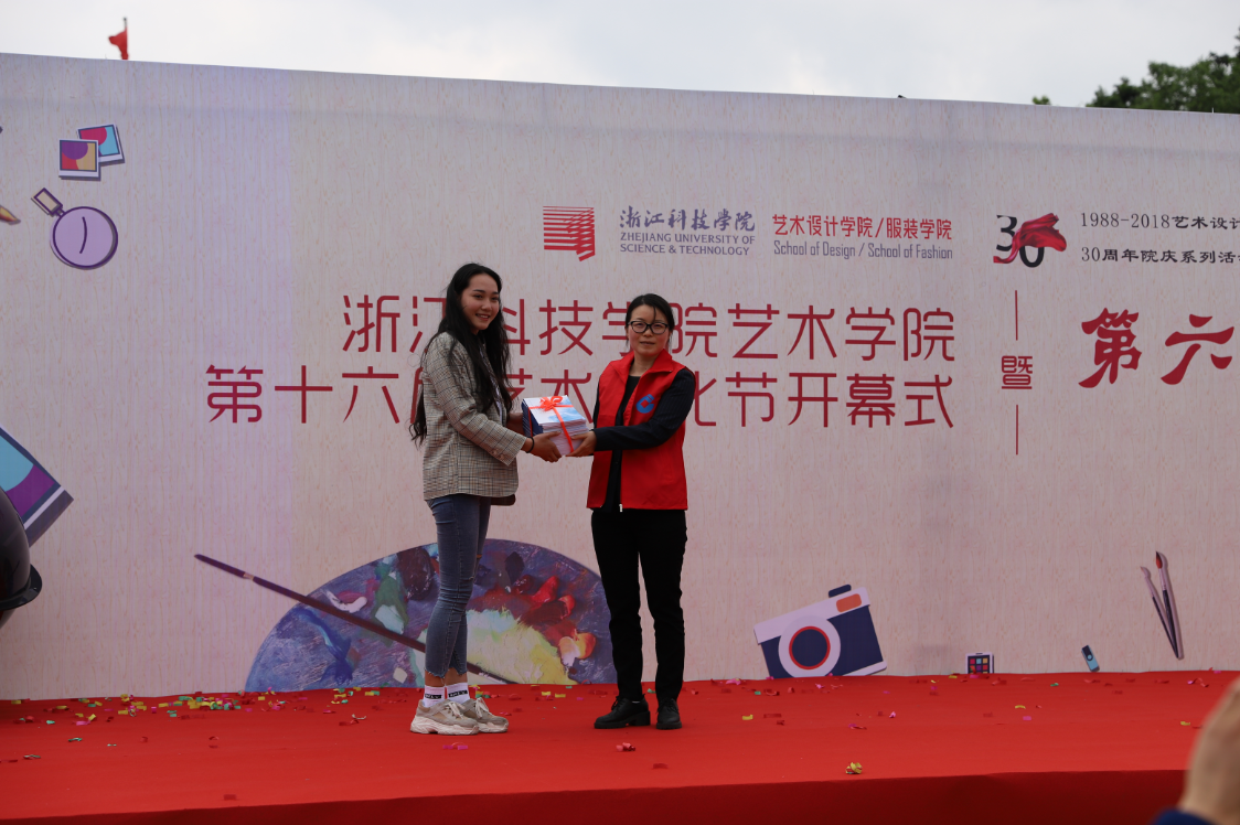 2018年4月24日,艺术设计学院/服装学院第十六届艺术文化节开幕式暨第六届创意市集在小和山圆形广场举行。校党委副书记赵东福,浙江电视台少儿频道副总监程程,中国建设银行杭州分行高级副经理张丽斯,留下街道团工委书记万怡出席,学院领导班子、相关职能部门负责人、师生代表参加。