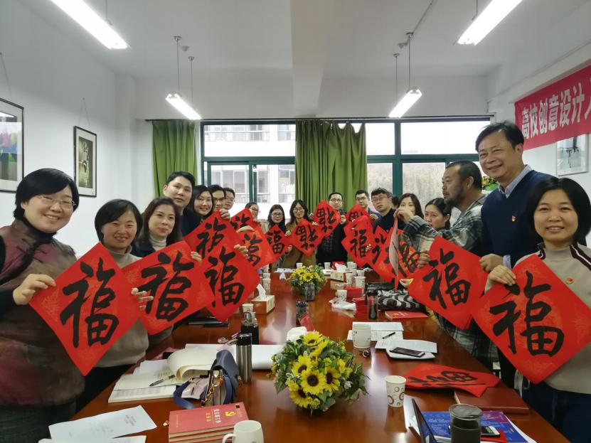 会后,党委书记、副书记送给与会人员由教工第二党支部党员孟涛老师书写的新春“福”字,同贺新春。