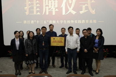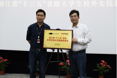 最后,在热烈的掌声中单校长和陈奕先生共同为浙江省“十三五”大学生校外实践教育基地挂牌。