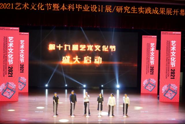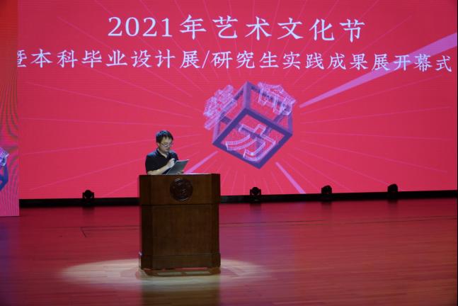 艺术文化节暨本科毕业展/艺术硕士研究生实践成果展在大学生活动中心(水晶剧院)隆重开幕。校党委书记龚建立,校党委委员、宣传部部长姜雯,党委研究生工作部部长、研究生院常务副院长侯北平,招就处处长葛龙威,团委书记戈洪伟,建德大慈岩镇副镇长杜立恒,优秀校友陈建国,校外硕导章鸥雁教授、陈书新总裁等应邀出席。学院党委书记詹俊、院长郑林欣、副院长吴春胜、党委副书记钟琴以及学院师生代表参加了此次开幕式。