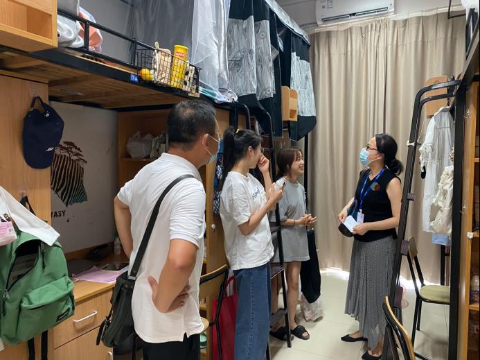 在新生寝室,学院领导与新生展开了亲切的交流,关怀之情溢于言表,一声声的问候让寝室内氛围愈加融洽,充满欢声笑语。老师勉励新生要努力适应新环境,做好学业规划,把握时光,制定目标,刻苦学习,积极实践,展现艺术学子的风采。