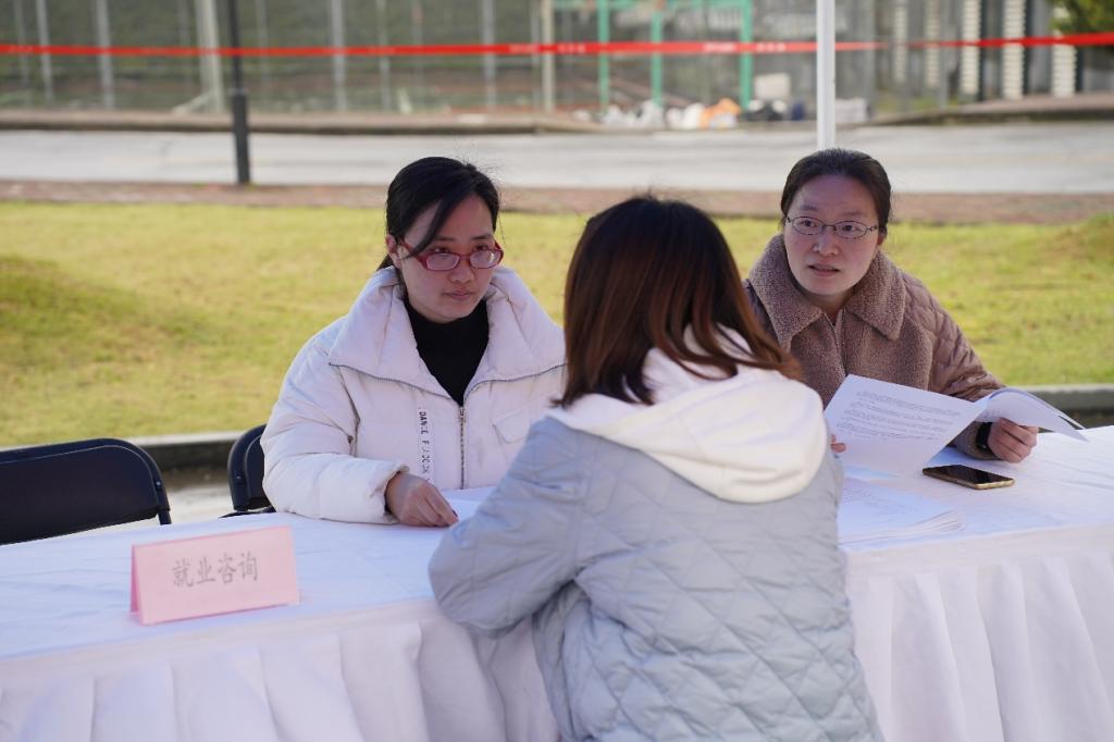 纵向第四、第五党支部在招聘会现场设置了考研咨询台和就业咨询台。支部老师、学生工作主要负责人及毕业班辅导员为毕业生提供一对一的政策指导,并在职业定位、职业选择、职业规划和求职技巧等方面提出建议,助力毕业生高质量就业。