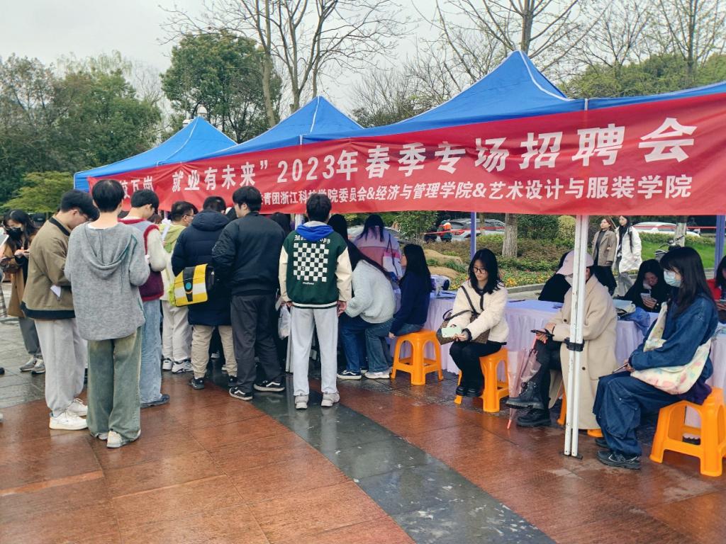 联合校团委、经济与管理学院于3月30日在学校圆形广场举行“千校万岗·就业有未来,2023年春季专场招聘会”。本场招聘会共有75家企业参会,参会单位中不乏世界500强企业、中国500强企业和上市公司。招聘需求共计671个岗位,涵盖金融、营销推广、文化传媒、艺术设计、行政文秘等多个领域,基本覆盖两个学院所有专业,吸引了500余名毕业生前来参加。