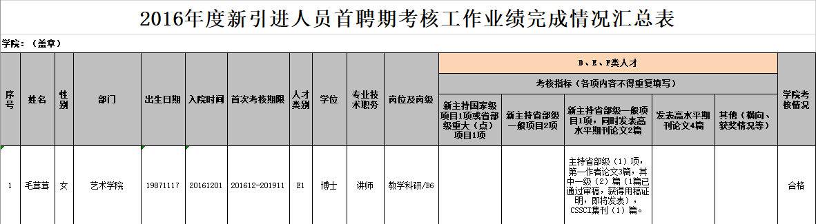 根据学校《关于开展2016年度引进人才首聘期考核的通知》精神,学院根据《浙江科技学院引进人才首个考核期考核实施办法(修订)》要求,对照新引进人员签订的《高层次人才人事聘用协议》约定,对2016年度引进的高层次人才开展首个考核期考核。经讨论,2016年度引进的高层次人才考核结果详见附表。